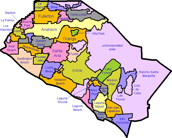 This map was from a plumber's website, and it seems that it is used to show that they work everywhere in Orange County. The map shows all the cities in Orange County and shades each city with a different color. I find this map interesting because I am from Orange County and never really looked closely at a map of my home area before. I chose this map in particular because it is easy to read, and shows only what I am looking for. For example, there were other maps of Orange County that I found which included freeways, rivers, and landmarks, but I was only interested in the boundaries and names of the cities so I chose this one.
